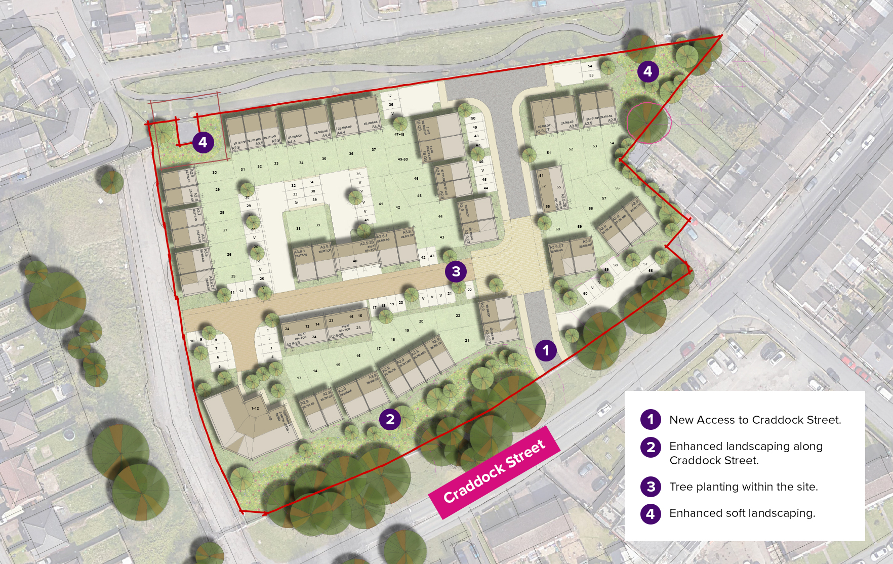 The proposal retains a buffer to Craddock Street highway and an enhanced green space is set within the red line area.