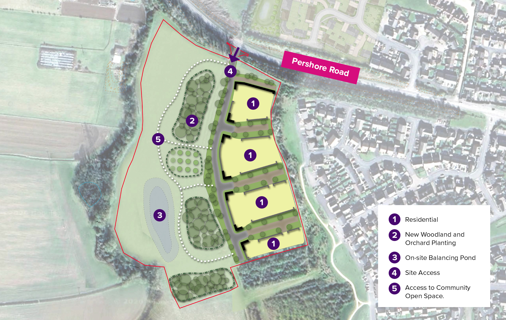 An Outline planning application for approximately 70 homes will be submitted to Wychavon District Council in Spring 2026. An Outline application differs to a detailed submission, with only certain matters considered for approval. The Outline application will likely confirm the principle of development (acceptability of housing) and access arrangements.