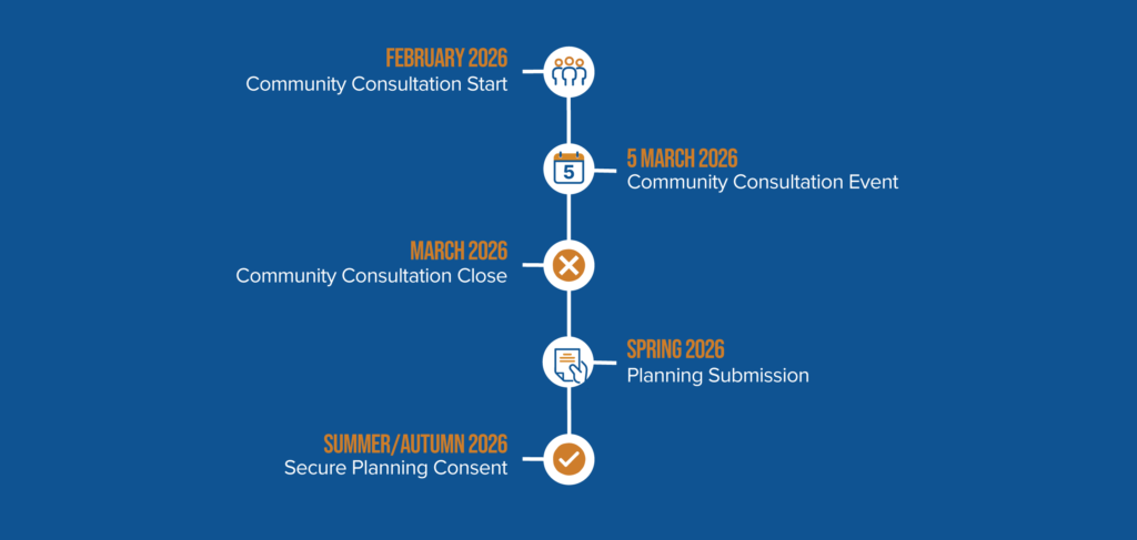 - When will a planning application be submitted? A submission is likely to be made early Spring 2026.