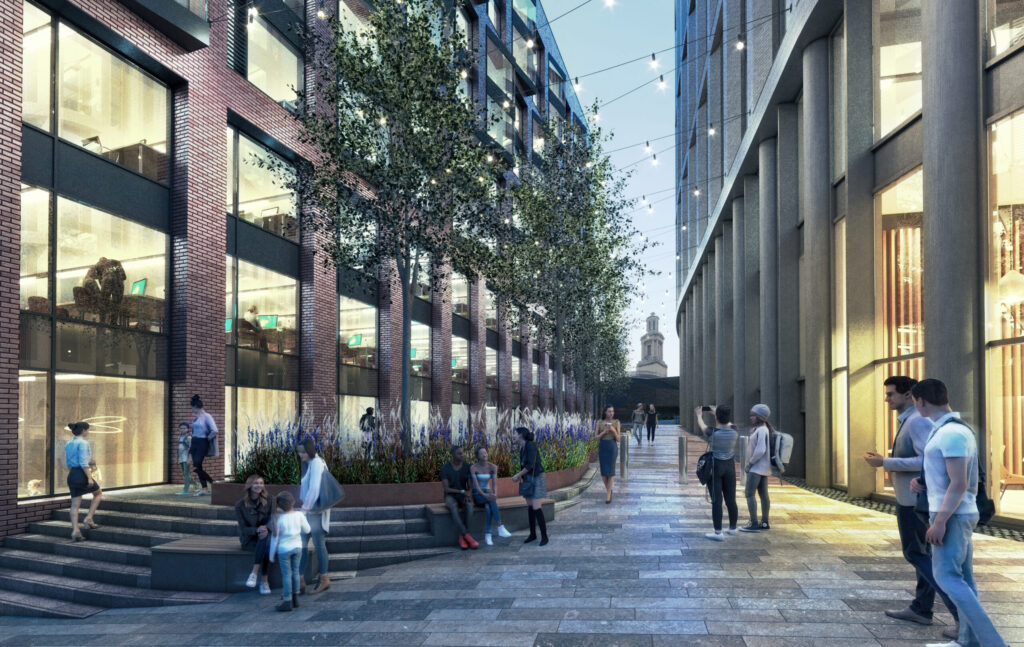 The proposal will achieve BREEAM Excellent and aspires to Outstanding. The highly sustainable proposal will deliver two blocks of Class E (office) development and opens up a new passageway between the City and the Peace Gardens, connecting with the existing Chapmans Passageway.